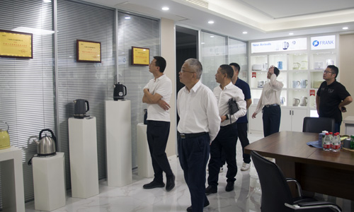 姚俊杰主席一行实地参观了投入使用的新厂房新产线,观摩了各车间的运行状况,了解了车间运行现状,随后又参观了样品陈列室,了解了企业的产品研发状况和出口情况。姚俊杰主席与弗兰克总经理吴凌杰先生就企业运营的各种问题及企业转型升级的方向方法展开了进一步探讨交流。姚俊杰主席高度认可了弗兰克电器对行业领域的深耕,赞扬了弗兰克展现的出的企业活力,并对企业未来的蓬勃发展表示了充分期待。